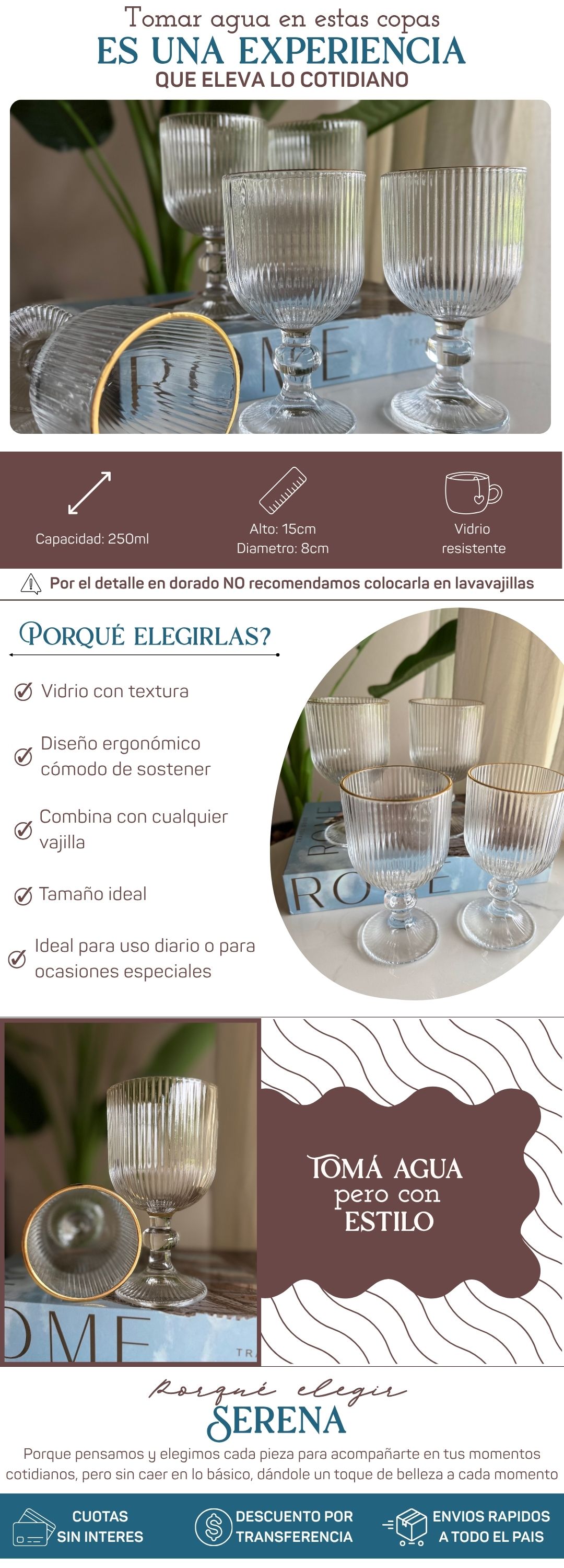 Copas Estocolmo ralladas con borde dorado - vos elegís si llevas 2 o 6!
